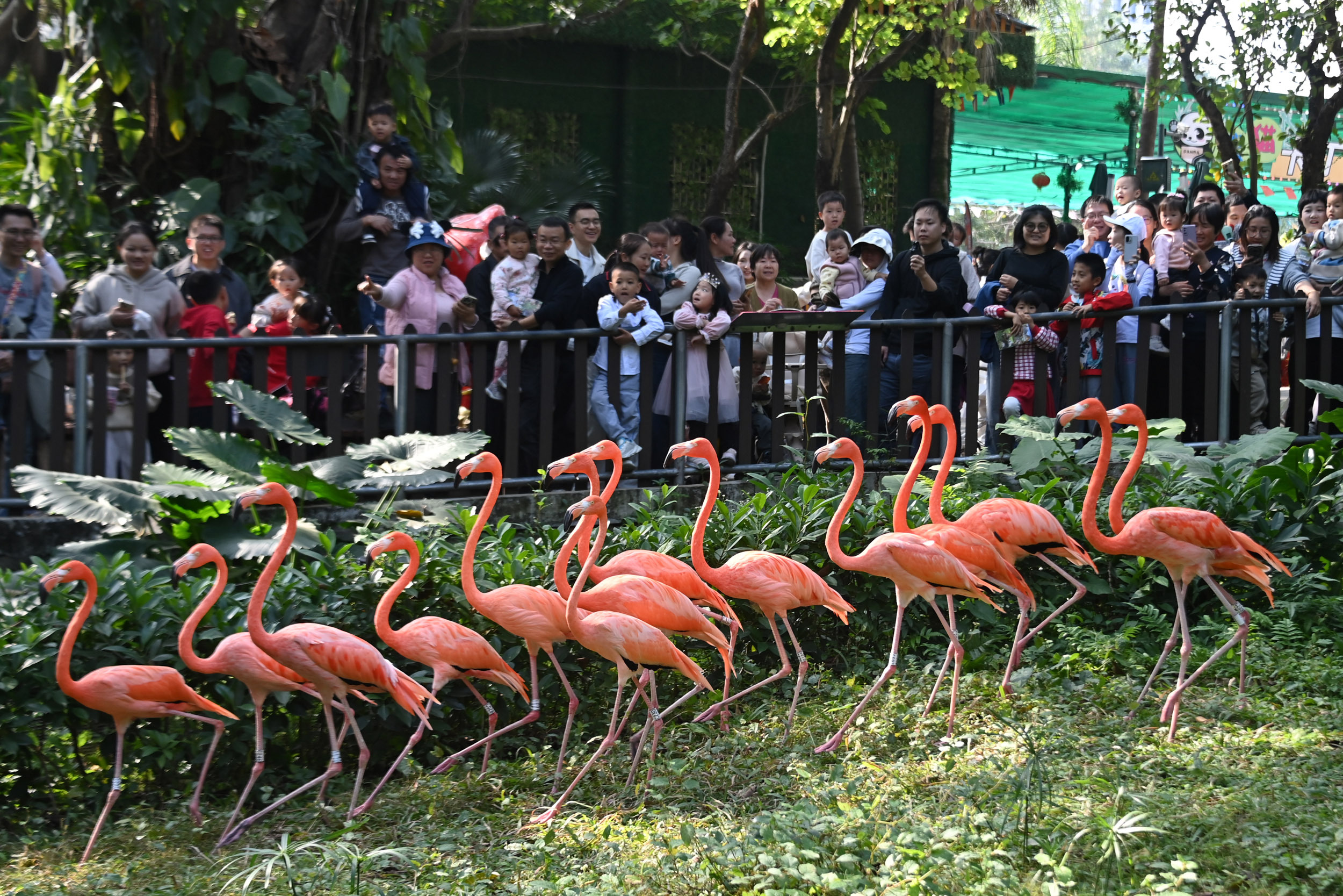 元旦假期,许多游客带孩子来动物园共度亲子时光。园内设有动物科普讲解点,为游客提供生动有趣的科普讲解。水豚、火烈鸟、白鹈鹕、骏马等动物还开展了特色巡游,游客可近距离与它们互动,收获喜悦。